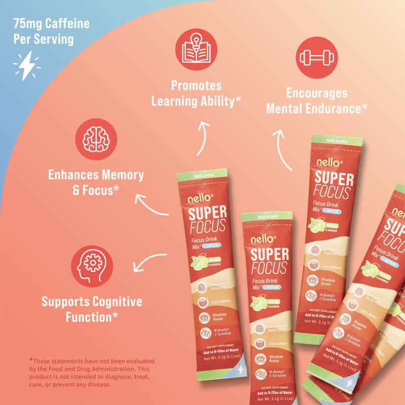 Nello Superfocus – Nootropic Drink Mix with Lion’s Mane, Rhodiola & Alpha-GPC